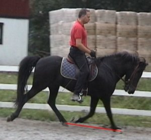 Om hästen har stora och framåtgripande rörelser kommer frambenet att lyftas mycket högre än bakbenet.
